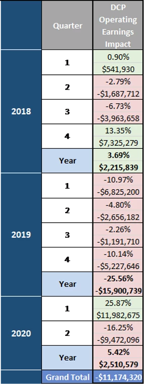 As an example, in Q1 2020 SG&A was positively impacted by $12 million while the following quarter (Q2 2020) SG&A was negatively impacted by $9.5 million – resulting in a total swing over the two quarters of $21.5 million. Note that this earnings impact persisted, even if the company was hedging with mutual funds or COLI.